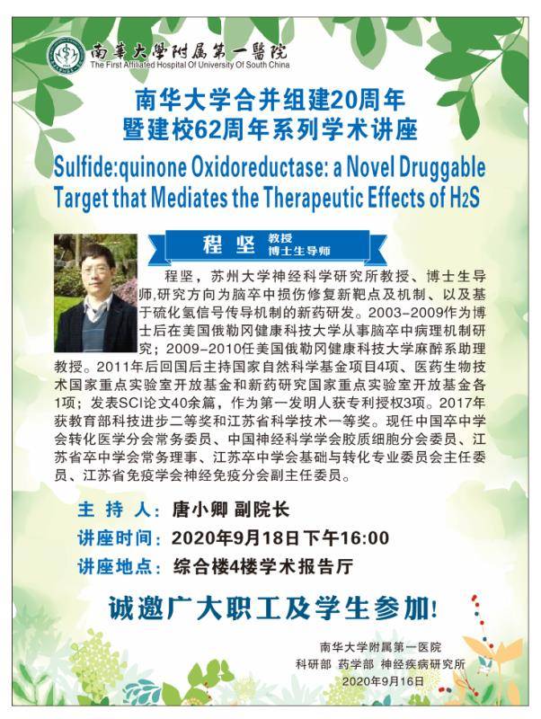 上一篇:南華大學合并組建20周年暨建校62周年系列學術講座--肺動脈高壓的分子機制及其干預的轉化醫學研究