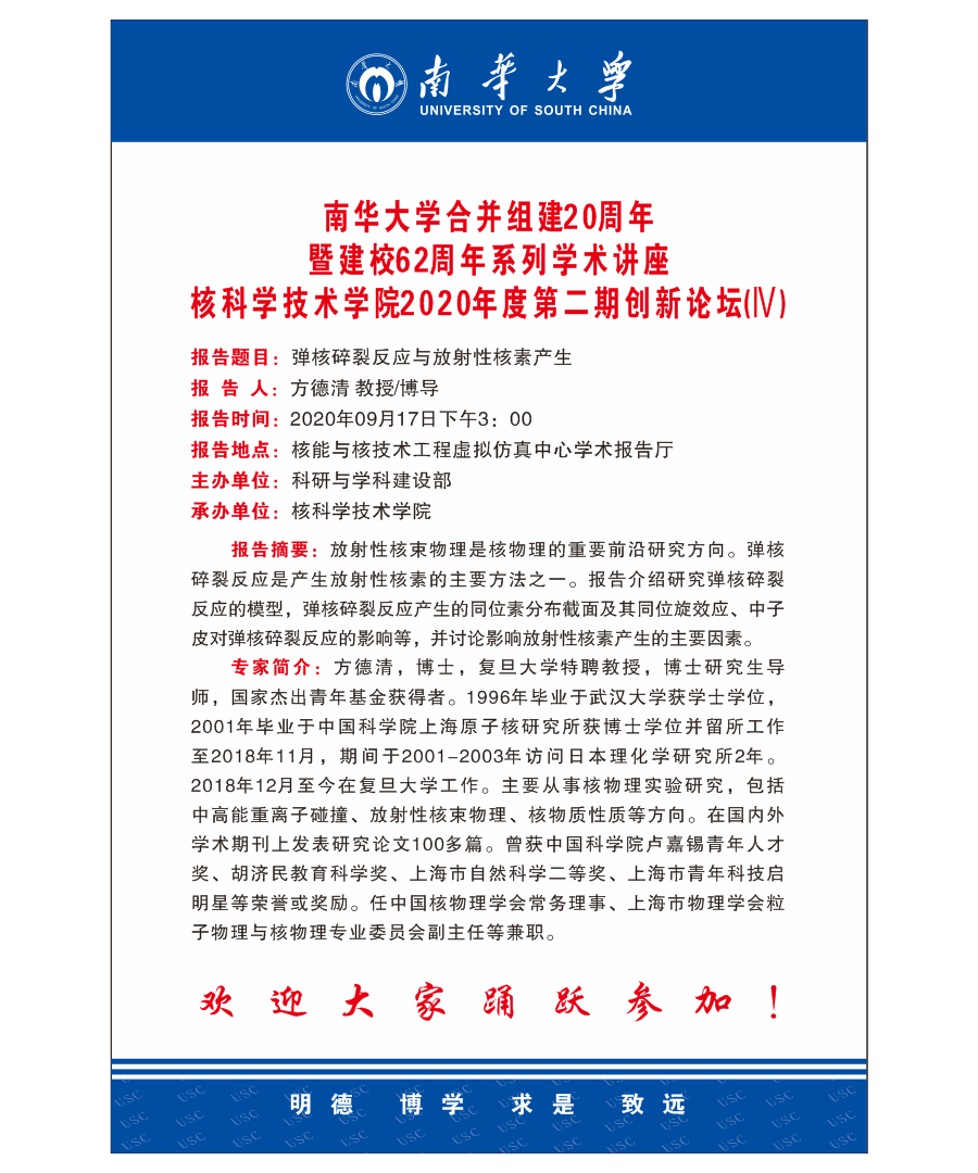 下一篇:南華大學(xué)合并組建20周年暨建校62周年系列學(xué)術(shù)講座--基于超強激光的準單能質(zhì)子束以及化正電子源