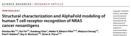 近日,南華大學衡陽醫(yī)學院伍代朝教授在Science子刊Science Advances發(fā)表題為“Structural characterization and AlphaFold modeling of human T cell receptor recognition of NRAS cancer neoantigens”(結(jié)構(gòu)表征和AlphaFold建模揭示T細胞受體識別NRAS癌癥新抗原的機制)的研究型論文。