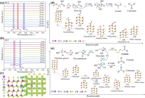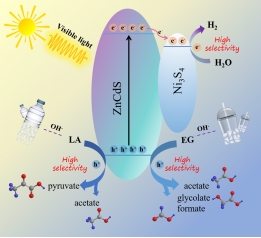 隨著全球塑料污染問(wèn)題日益嚴(yán)峻,開(kāi)發(fā)高效、綠色的廢塑料處理技術(shù)已成為當(dāng)務(wù)之急。光重整技術(shù)作為一種環(huán)境友好型解決方案,在廢塑料資源化利用方面展現(xiàn)出巨大潛力。然而,現(xiàn)有技術(shù)仍面臨液相產(chǎn)物產(chǎn)率低、產(chǎn)物選擇性差等關(guān)鍵科學(xué)問(wèn)題。針對(duì)這一挑戰(zhàn),張也教授團(tuán)隊(duì)通過(guò)精準(zhǔn)設(shè)計(jì)Ni3S4/ZnCdS異質(zhì)結(jié)光催化劑,成功實(shí)現(xiàn)了廢塑料向高附加值化學(xué)品的定向轉(zhuǎn)化,同時(shí)伴隨清潔能源H2的生成。研究團(tuán)隊(duì)通過(guò)系統(tǒng)的實(shí)驗(yàn)表征和理論計(jì)算,深入闡明了光催化劑的電荷轉(zhuǎn)移機(jī)制和塑料降解路徑,為開(kāi)發(fā)高效塑料光重整技術(shù)提供了重要的理論依據(jù)和實(shí)踐指導(dǎo)。這一創(chuàng)新性研究成果不僅推動(dòng)了光催化技術(shù)在環(huán)境治理領(lǐng)域的應(yīng)用,也為解決全球塑料污染問(wèn)題提供了新的思路和方法。