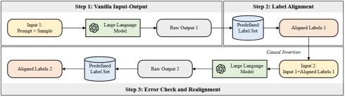 研究團(tuán)隊(duì)利用因果推斷中的因果干預(yù)和反事實(shí)技術(shù)有效減少大語(yǔ)言模型輸出中的幻覺(jué)問(wèn)題,通過(guò)雙重對(duì)齊和錯(cuò)誤檢查機(jī)制實(shí)現(xiàn)了大語(yǔ)言模型在動(dòng)態(tài)標(biāo)簽集上的高效適配(圖2),顯著提升了大語(yǔ)言模型在大規(guī)模多標(biāo)簽分類(lèi)任務(wù)、動(dòng)態(tài)標(biāo)簽集合場(chǎng)景下的性能。