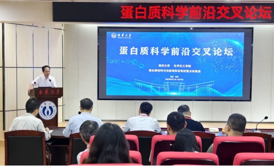 王利華在致辭中對與會專家的到來表示熱烈歡迎,并介紹了南華大學的發展概況。他指出,南華大學始終立足地方、服務國家戰略,以建設“特色鮮明的高水平大學”為目標,緊密圍繞國家核工業戰略和健康中國需求,深化產教融合,推動學科交叉創新,為高等教育強國和現代化新湖南建設貢獻智慧與力量。他希望以此次論壇為契機,進一步加強與各高校及科研機構的合作,共同推動蛋白質科學領域的發展。