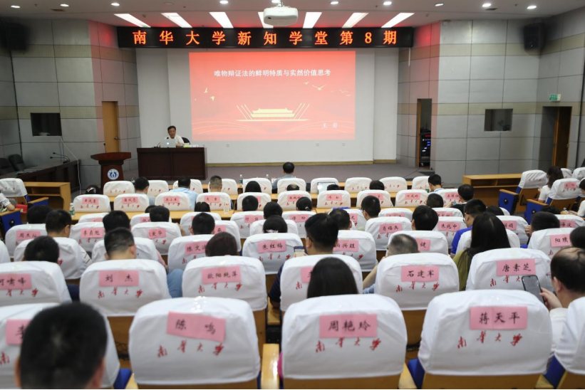 5月22日晚,南華大學(xué)新知學(xué)堂2024年第8期在紅湘校區(qū)圖書館開講。教育部“長江學(xué)者”特聘教授、國家級教學(xué)名師、南京航空航天大學(xué)馬克思主義學(xué)院王巖教授應(yīng)邀來校,以“唯物辯證法的鮮明特質(zhì)與實然價值思考”為題為在場師生作學(xué)術(shù)報告。校黨委副書記雷小勇主持報告會。