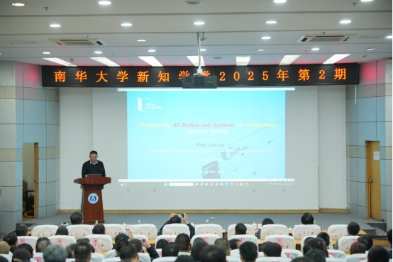 2月27日晚,南華大學新知學堂2025年第2期在紅湘校區圖書館一樓新知學堂如期舉行。英國北愛爾蘭奧斯特大學計算學院教授、計算機學院人工智能研究中心主任劉軍,以“自主決策的可信人工智能模型和系統”為題作學術報告。校黨委書記高山、全體在校領導、黨委委員出席。校黨委委員、副校長夏昆主持報告會。